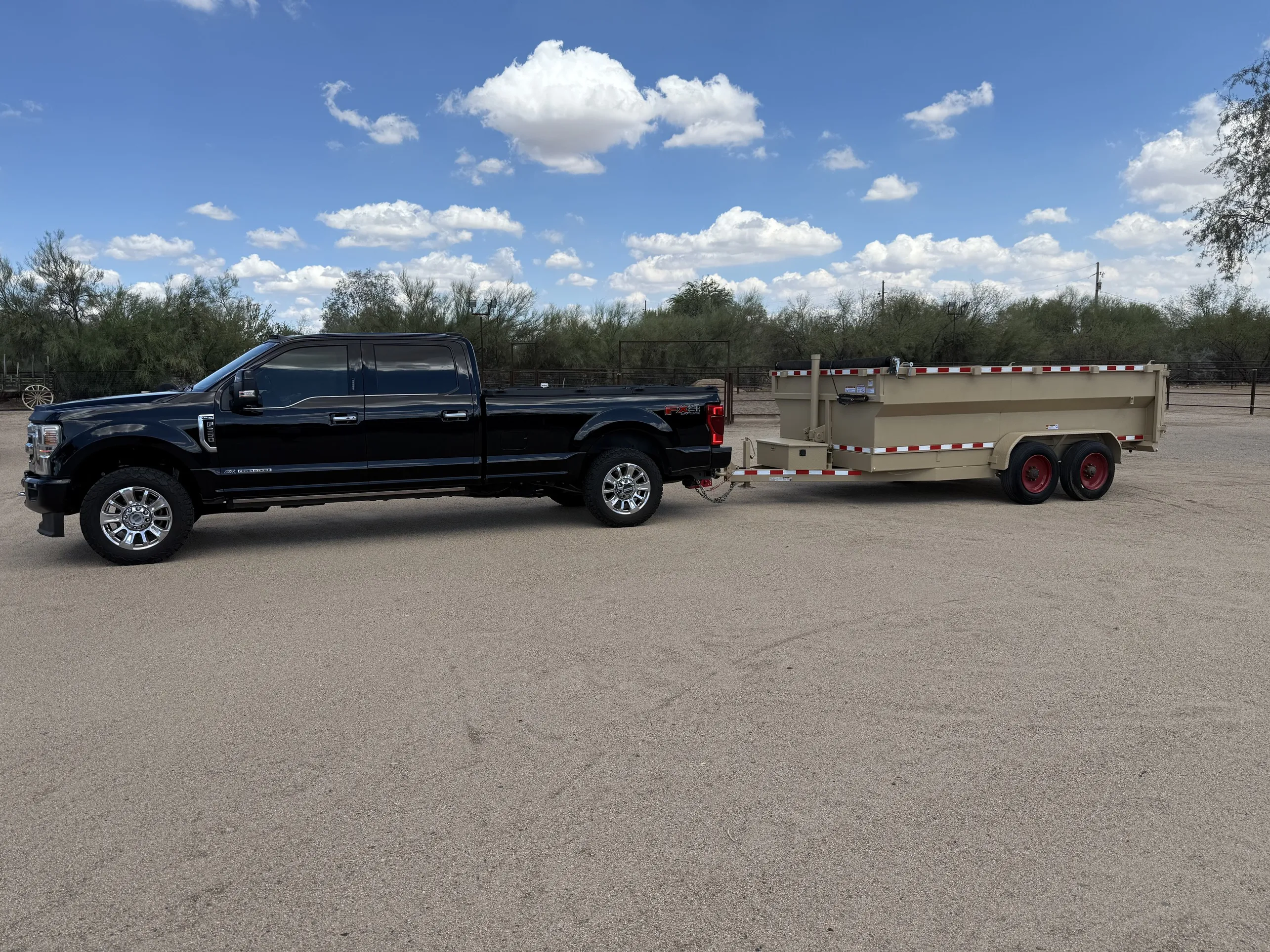 The second trailer was the 14ft dump trailer. I used this trailer to haul both dirt and manure from the ranch to the dump site. It was incredibly robust, even fully loaded, it didn’t feel unstable, no matter what washboard roads I threw at it. The hydraulic tilt worked flawlessly and let me unload quickly without struggling. The high capacity made short work of what would’ve been a day-long chore with a smaller trailer. Not once did I feel like I was pushing its limits. I love the 18K GVWR build to this dump trailer.